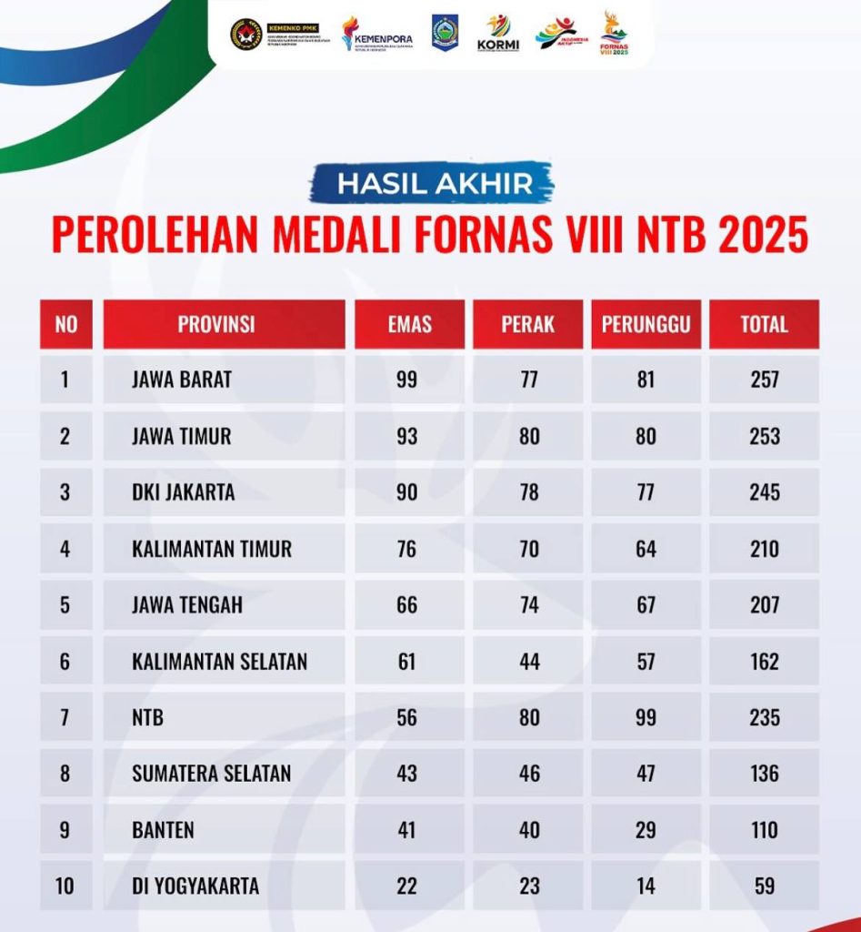Namun kenyataan di lapangan berkata lain. Dominasi masih dipegang oleh daerah-daerah kuat seperti Jawa Barat, yang keluar sebagai juara umum dengan 99 emas, 77 perak, dan 81 perunggu. Disusul Jawa Timur (93 emas) dan DKI Jakarta (90 emas) yang masing-masing menempati posisi kedua dan ketiga.