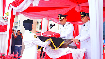 “Saya sangat bangga dan terharu. Anak-anak kita, para petugas Paskibraka tahun ini, luar biasa semangatnya. Atas nama pemerintah daerah, saya menyampaikan penghargaan setinggi-tingginya atas dedikasi mereka dalam upacara pengibaran maupun penurunan bendera,” tegasnya.