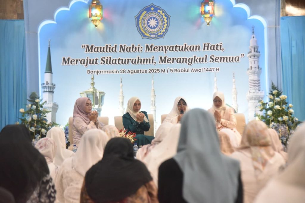 Ketua TP PKK Provinsi Kalsel, Hj. Fathul Jannah Muhidin, mengajak seluruh jamaah untuk menjadikan Maulid Nabi Muhammad SAW sebagai momentum memperkuat iman dan meneladani akhlak Rasulullah.