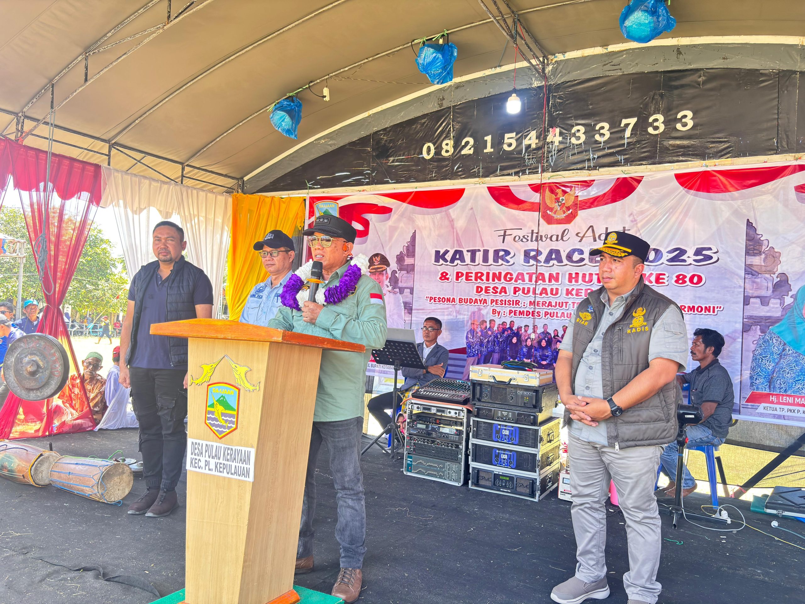 Kotabaru, Jukung.co.id – Bupati Kotabaru H. Muhammad Rusli, S.Sos bersama rombongan menghadiri Festival Adat Katir Race 2025 yang digelar di Desa Pulau Kerayaan, Kecamatan Pulau Laut Kepulauan, Senin (22/09/2025). Kegiatan budaya pesisir yang berlangsung di Lapangan Arjuna ini dirangkaikan dengan peringatan HUT ke-80 Republik Indonesia, mengusung tema “Budaya Pesisir: Merajut Tradisi, Merawat Harmoni”.