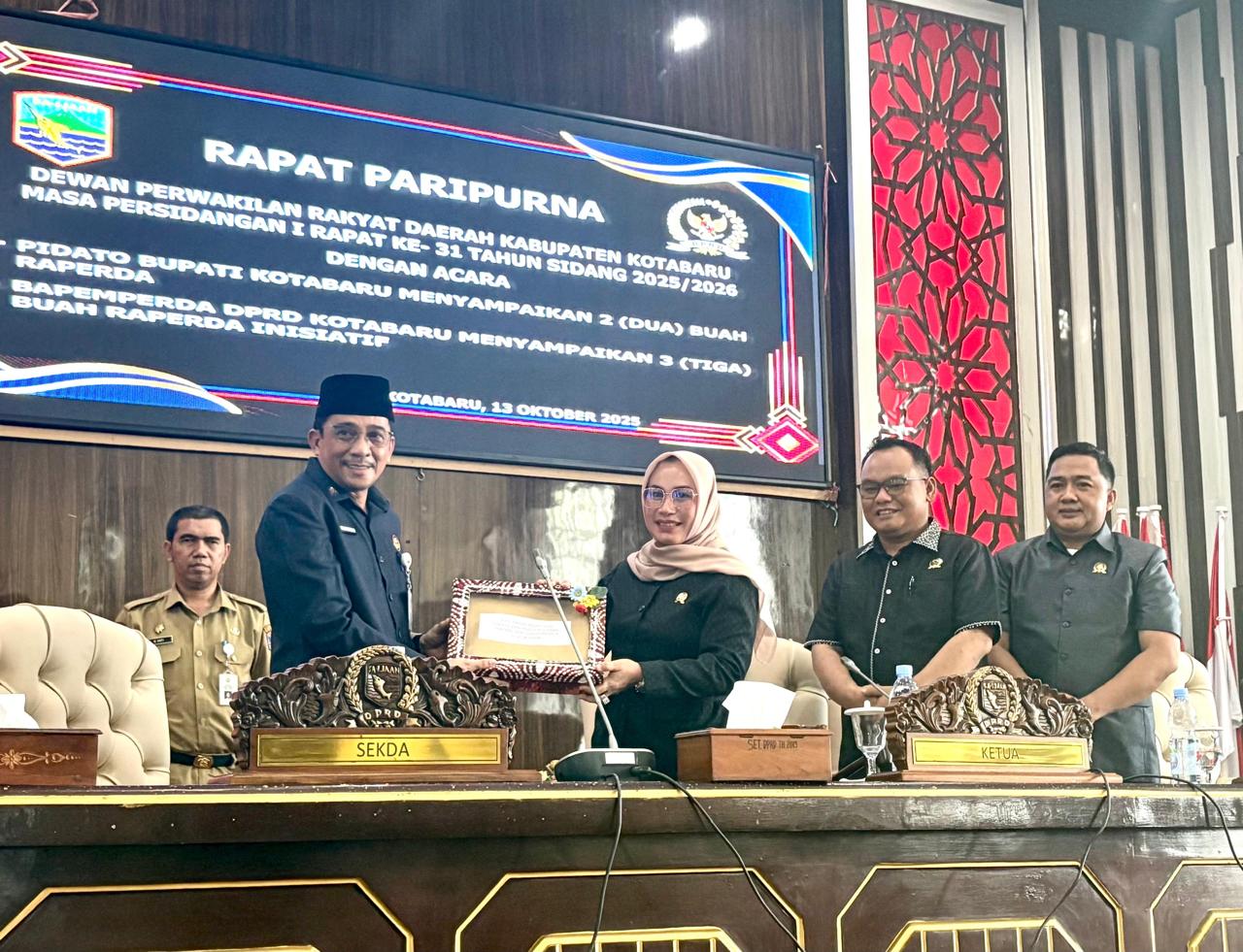 Kotabaru, Jukung.co.id – Pemerintah Kabupaten (Pemkab) Kotabaru kembali mengambil langkah strategis dalam memperkuat tata kelola keuangan daerah dan pelayanan publik. Melalui rapat Paripurna Masa Persidangan Satu Rapat ke-31 DPRD Kotabaru, Pemkab Kotabaru secara resmi menyampaikan dua buah Rancangan Peraturan Daerah (Raperda) penting untuk dibahas bersama legislatif, Senin (13/10/2025).