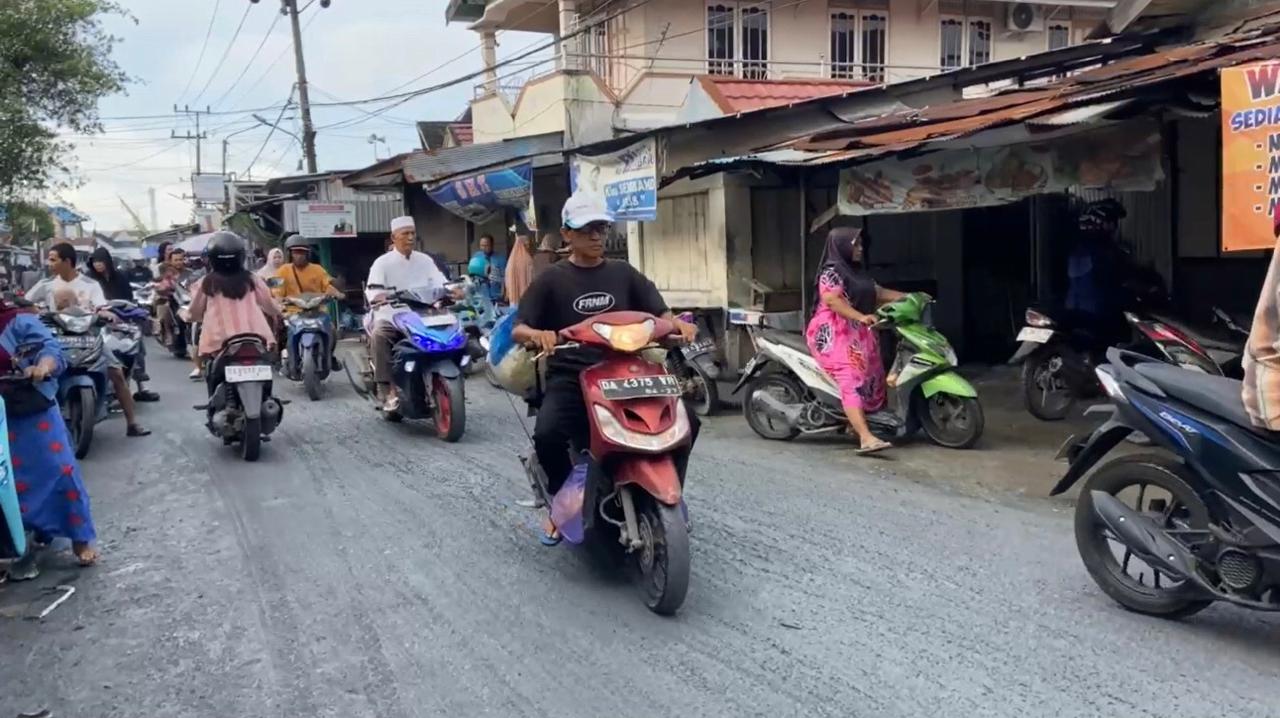 “Pengendara banyak yang rabah karena licin. Bahkan ada warga yang memilih berjalan tanpa memakai sandal supaya kada tagugur,” ujarnya.