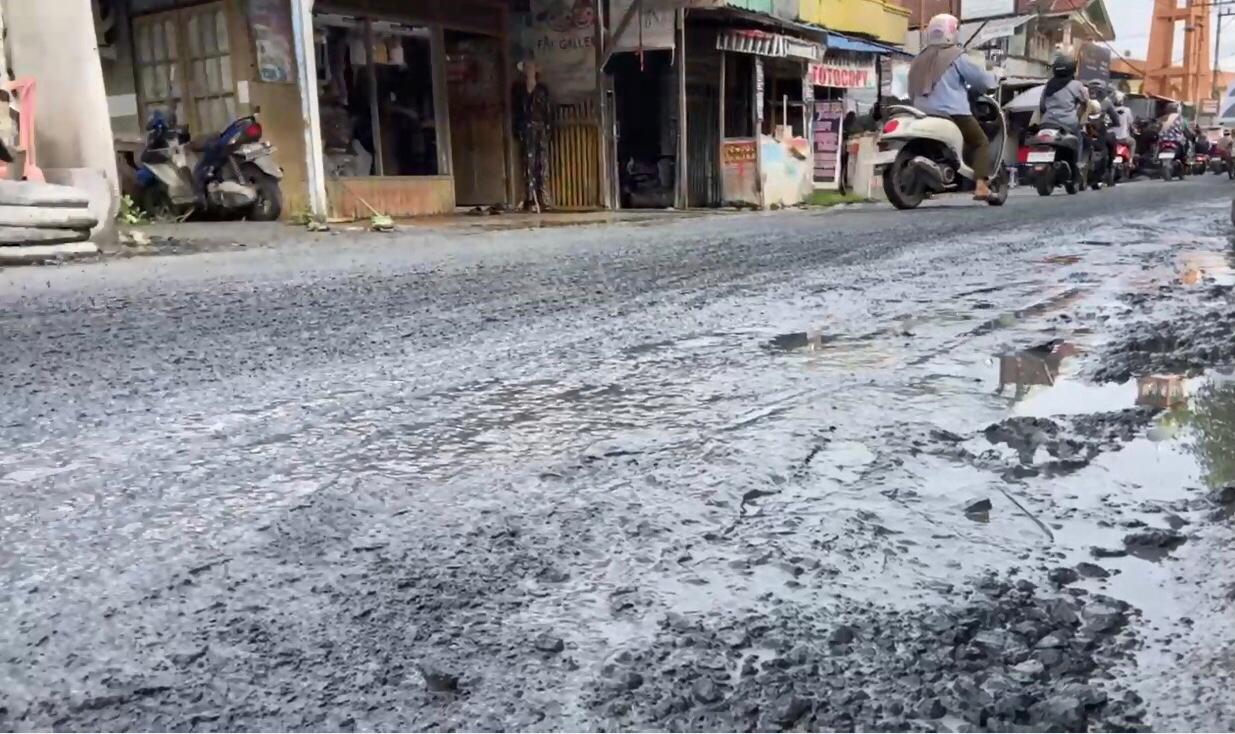 Ia juga menyebut ketika cuaca panas, jalan itu berubah menjadi sumber debu yang mengganggu pedagang di sepanjang ruas, termasuk usahanya sendiri.