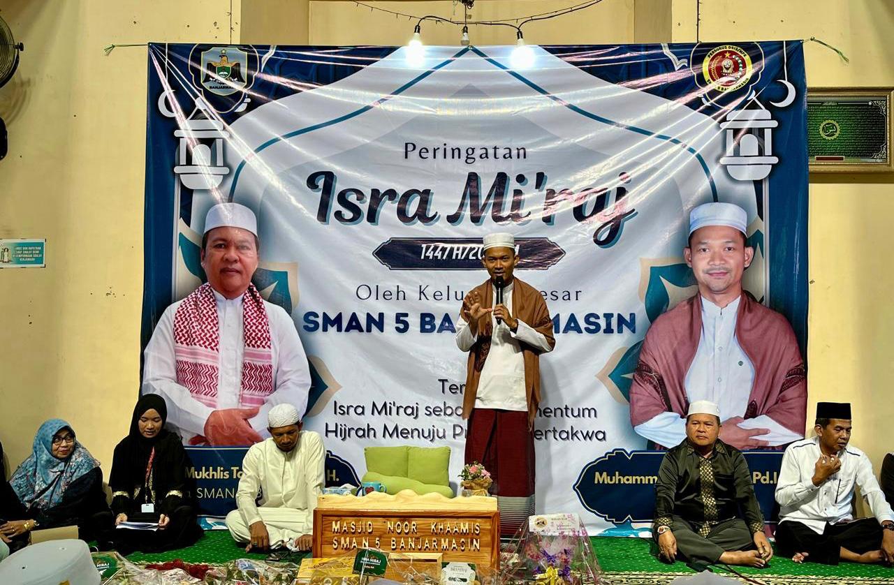 Kepala SMA Negeri 5 Banjarmasin, Muchlis Takwin, mengatakan peringatan Isra Mi’raj Nabi Muhammad SAW merupakan agenda rutin tahunan sekolah yang bertujuan memperkuat pembinaan karakter religius peserta didik.