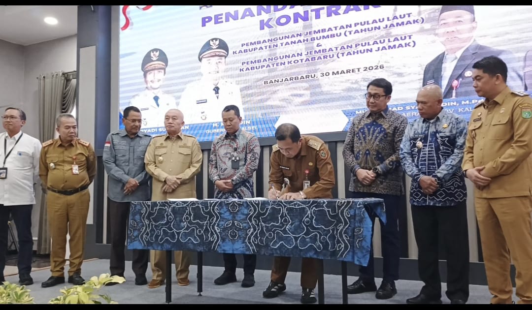 Kotabaru, Jukung.co.id – Komitmen pembangunan infrastruktur strategis di Kalimantan Selatan kembali diperkuat melalui penandatanganan lanjutan kontrak kerja sama proyek pembangunan Jumbatan Pulau Laut dengan skema tahun jamak (multiyears), jelang tengah hari Senin (30/03/2026).